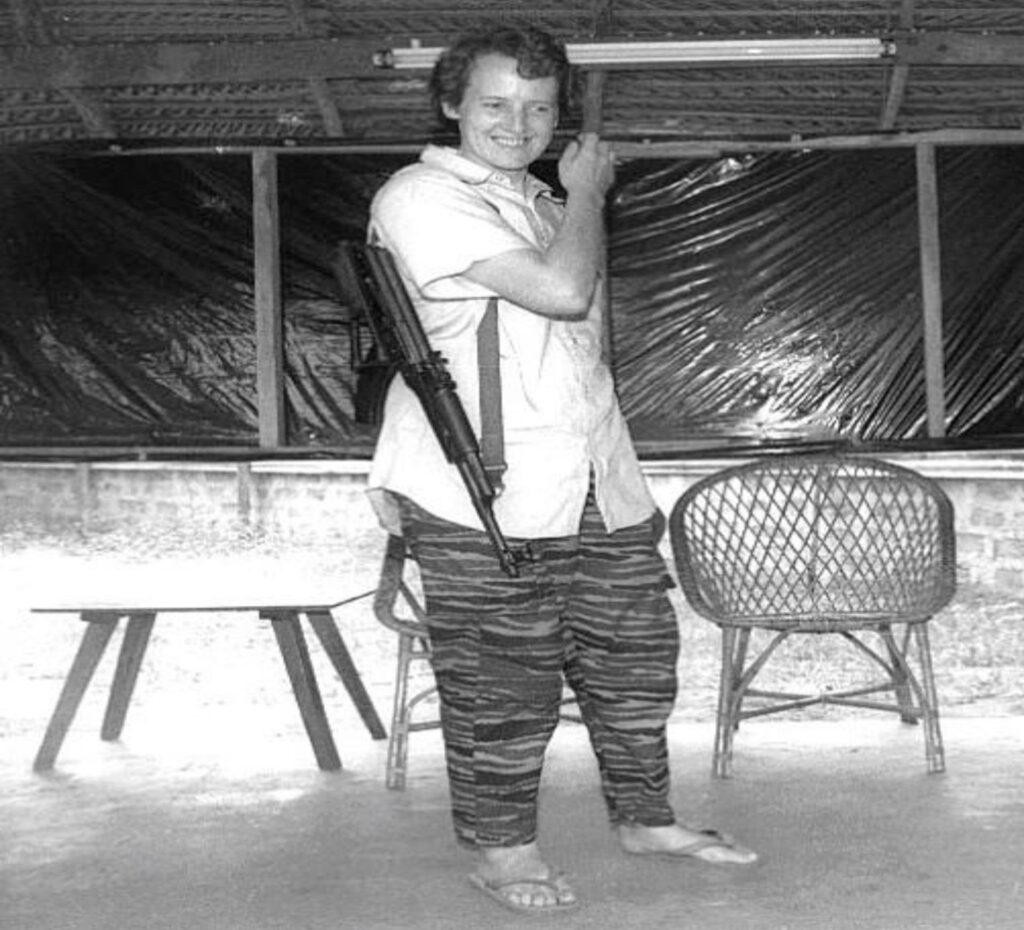 There were images taken from behind rebel lines: cadres barefoot in the undergrowth, rifles held without tremor, eyes trained just past the frame. Boys and girls, still children, faces set in expressions they had not yet grown into. The jungle was a backdrop, deliberate but not false. The cyanide capsules gleamed like pendants. One frame caught a woman crouched beside a small bundle, cloth-wrapped, impossibly small. Her face was turned away. Behind her, streaks of blood ran across the floor, a trail of what had been dragged and could not be named.