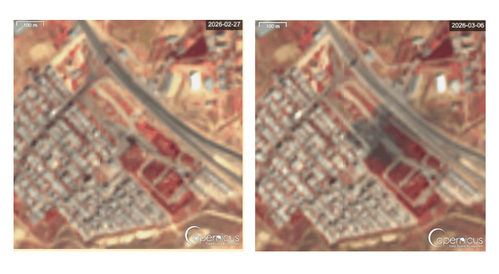 Satellite imagery from Sentinel-2 shows that only the 115 Emergency Base in Zibashahr Park was hit. Satellite imagery shows at least three buildings that were destroyed. A video from the location shows a man walking through the wreckage. Also visible are two buildings left standing.