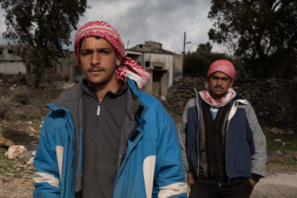 “It wasn’t like this before,” says Ahmed Rahayyin, 17, a shepherd. “I’m horrified when I work.” He stands on the edge of the road to Rohaina village, holding a wooden staff in his right hand. He and his 16-year-old brother, Mustafa, each wear a red and white “shmagh” (traditional head covering).