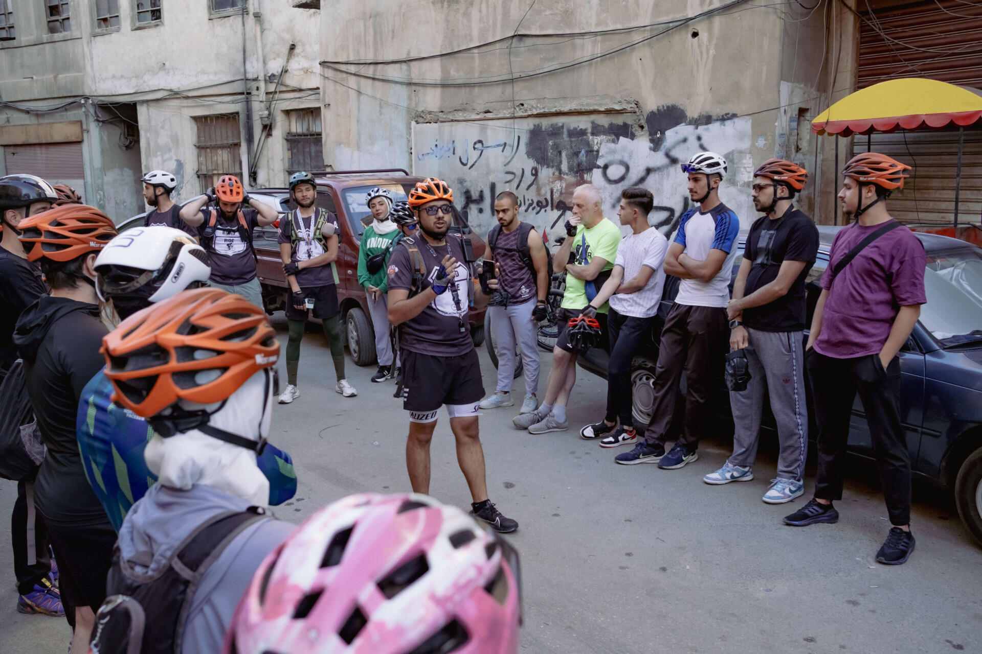 “Look at this — that’s peacebuilding,” says Bassam, one of the founders, turning to the cyclists chatting in Damascus streets during a ride briefing. The peloton includes a bit of everything: veiled women and others without headscarves, young and older riders, men and women side by side. “Hijab or no hijab — it doesn’t matter here. What counts is that we feel connected.”