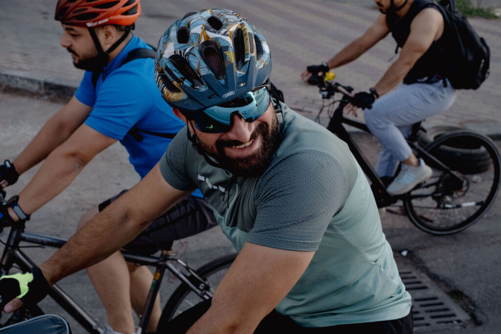 Adel, the eldest at 58, is a retired civil engineer who first picked up a bike to relieve back pain. Now, he often brings up the rear — calm, measured, attentive. “I’m still surprised by how young they are. But it gives me hope. This community, full of dreams … My dream would be for a Syrian society to be like this,” he admits, worried about the future. He knows such a mix of identities is frowned upon by some. He knows that balance is fragile.