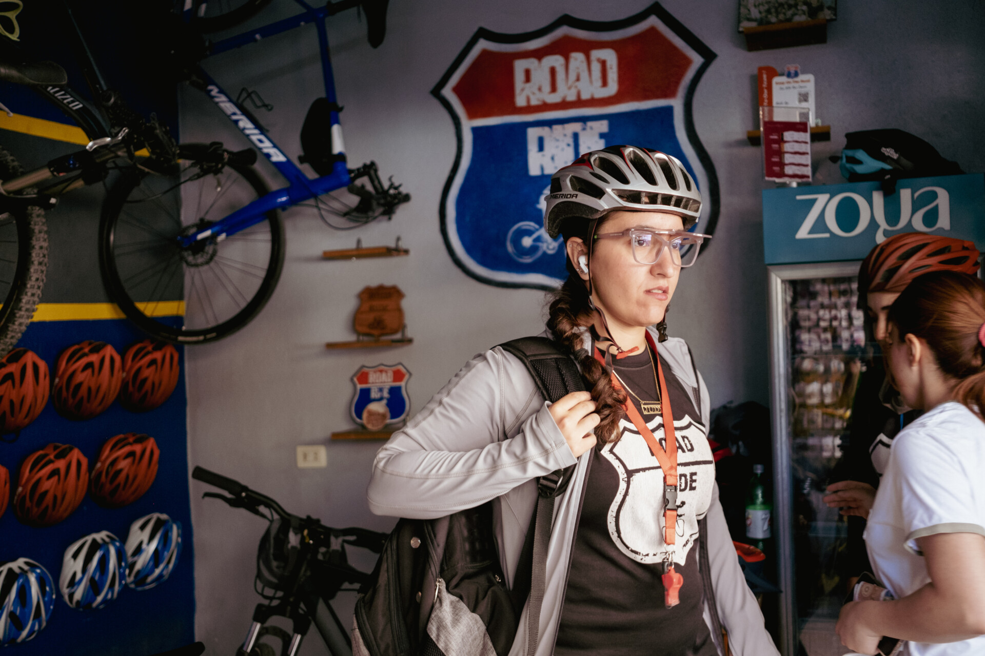 Cyclists meet outside a gleaming new bike shop emblazoned with the Road Ride logo. They get ready with thoroughness. Once their helmets are clicked, their gloves fitted and their water bottles filled, they are ready to go. The atmosphere is relaxed yet efficient. On the pavement, their lined-up bikes form a quiet force.