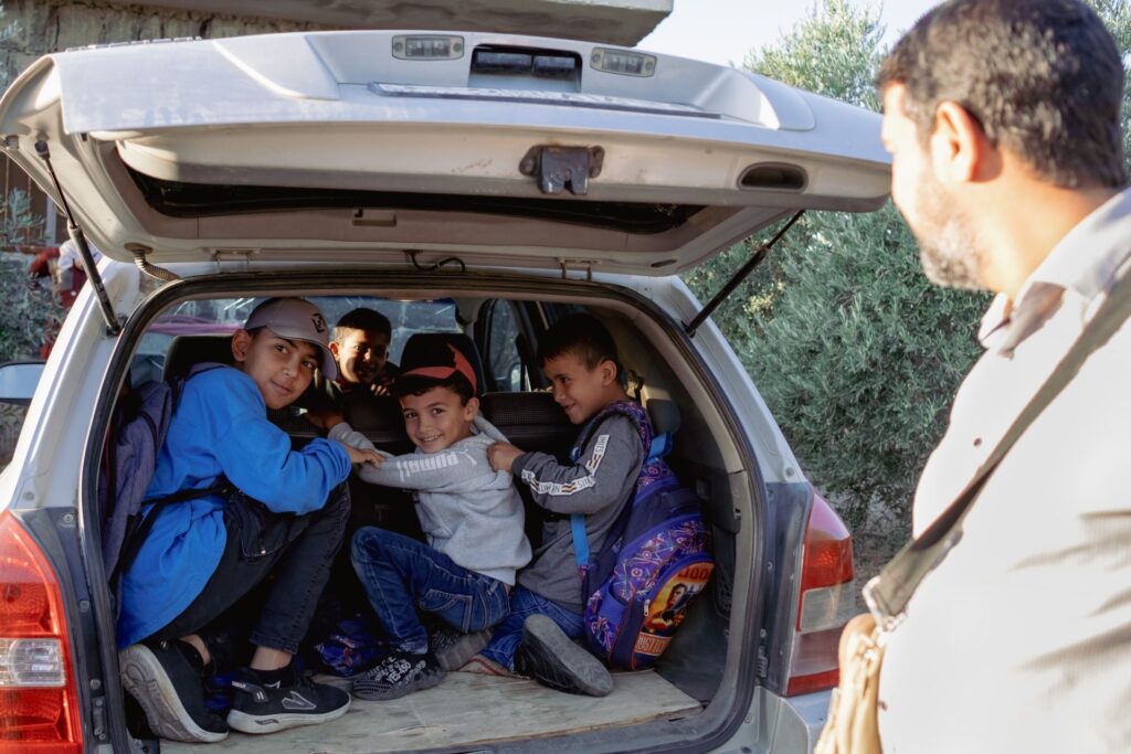 He eventually found a job with the United Nations. He remembers the first smile of little Mahmoud — three months after his release — when he took him to school for the first time. He looks like the happiest man in the world as he drives them to school, his own children and the cousins, too. The car is packed with kids, even in the back, where three of them sit. Some other children walk to school, but he insists on taking them himself. He watches them with a quiet, proud smile.