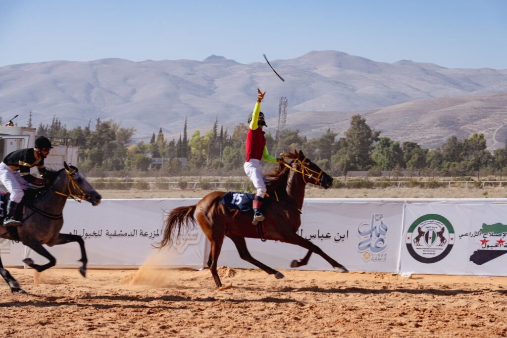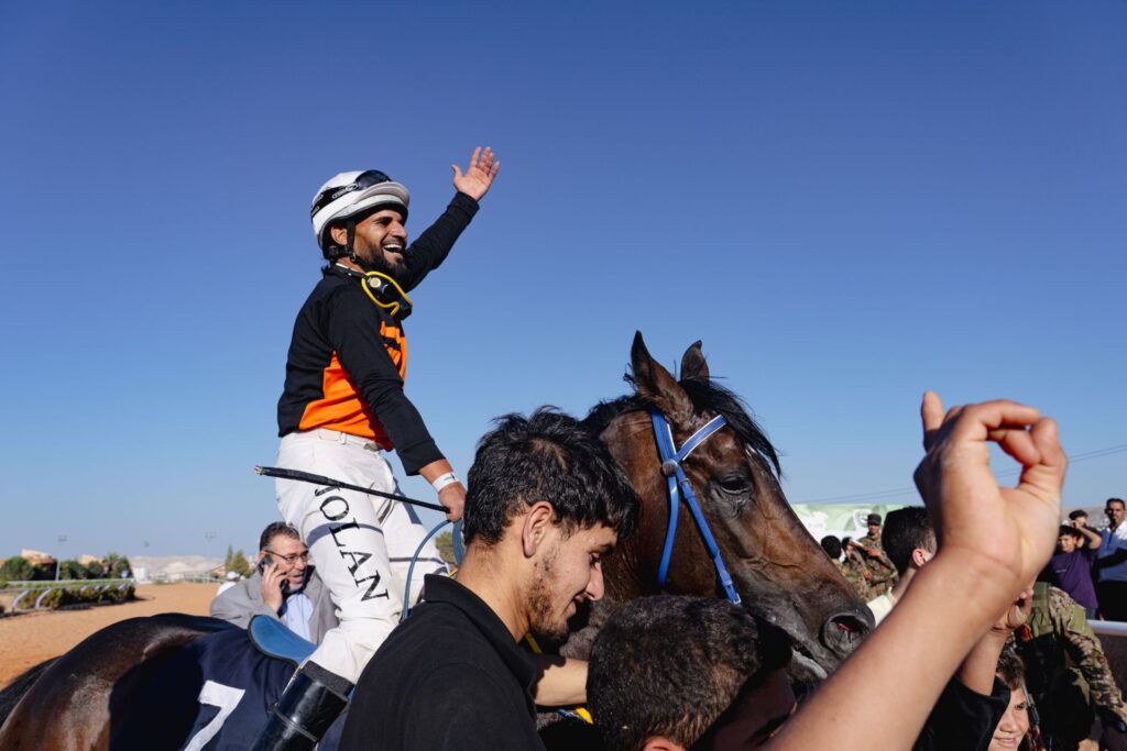 Hooves strike the ground. Across the stable, Mahmoud Sabah, a 23-year-old jockey, locks eyes with the horse he is about to ride, Yaqout. For a moment, it feels like they are speaking to each other — he is counting on the animal to win. A Palestinian Syrian from Hama, a jockey since 2020, Sabah returned to Syria just 10 days earlier, for the first time since Assad’s overthrow.